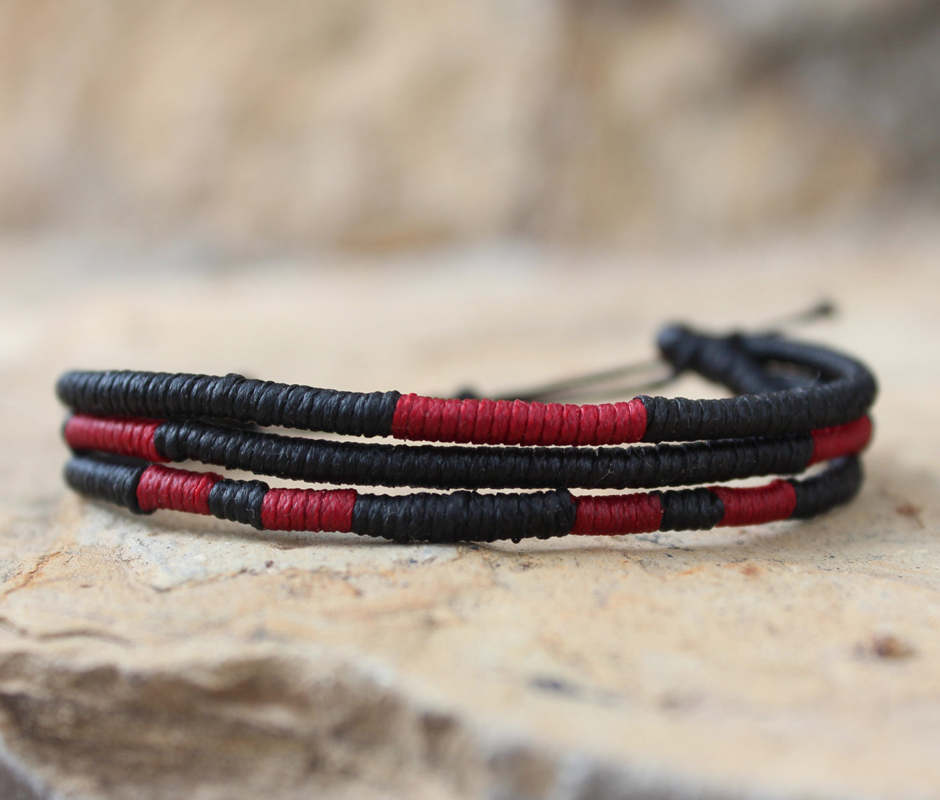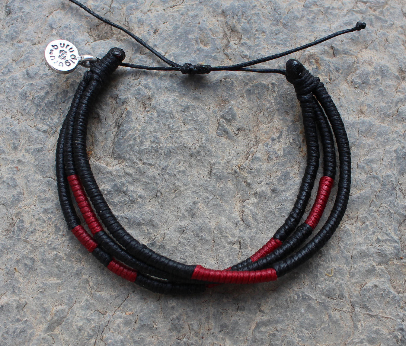 1 adet siyah ve bordo renklerde, 3 ü 1 arada, tek bağlamalı bileklik