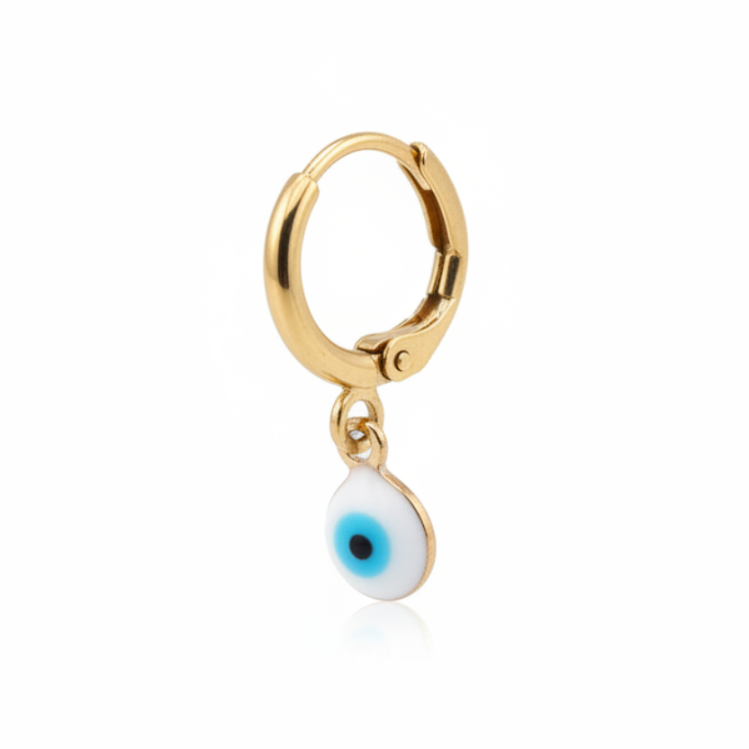 1 adet paslanmaz çelik beyaz nazar boncuklu küpe
