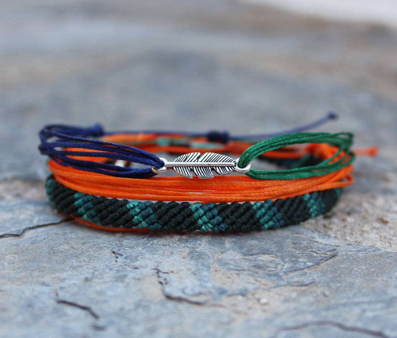1 adet lacivert, yeşil renklerde tüy aksesuarlı bileklik