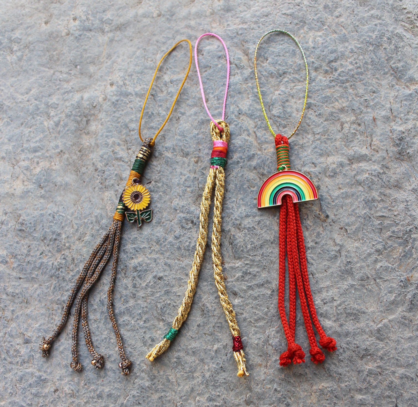 3 adet renkli eğlenceli charm detaylı çanta süsü.