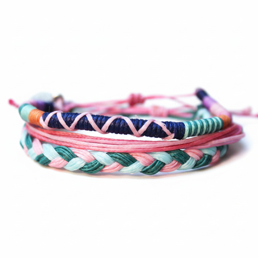 1 adet pembe, açık mavi ve koyu yeşil saç örgüsü bileklik