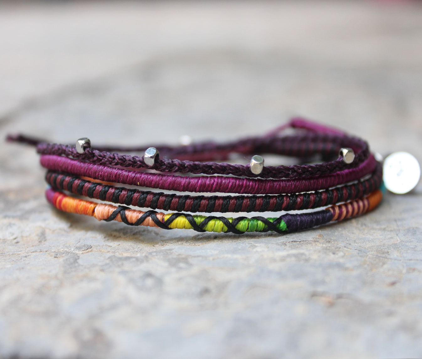 1 adet çok renkli ince bileklik (Bu üründe kullanılan ip gereği, renk sıralaması her bileklikte farklı denk gelebilmektedir.)