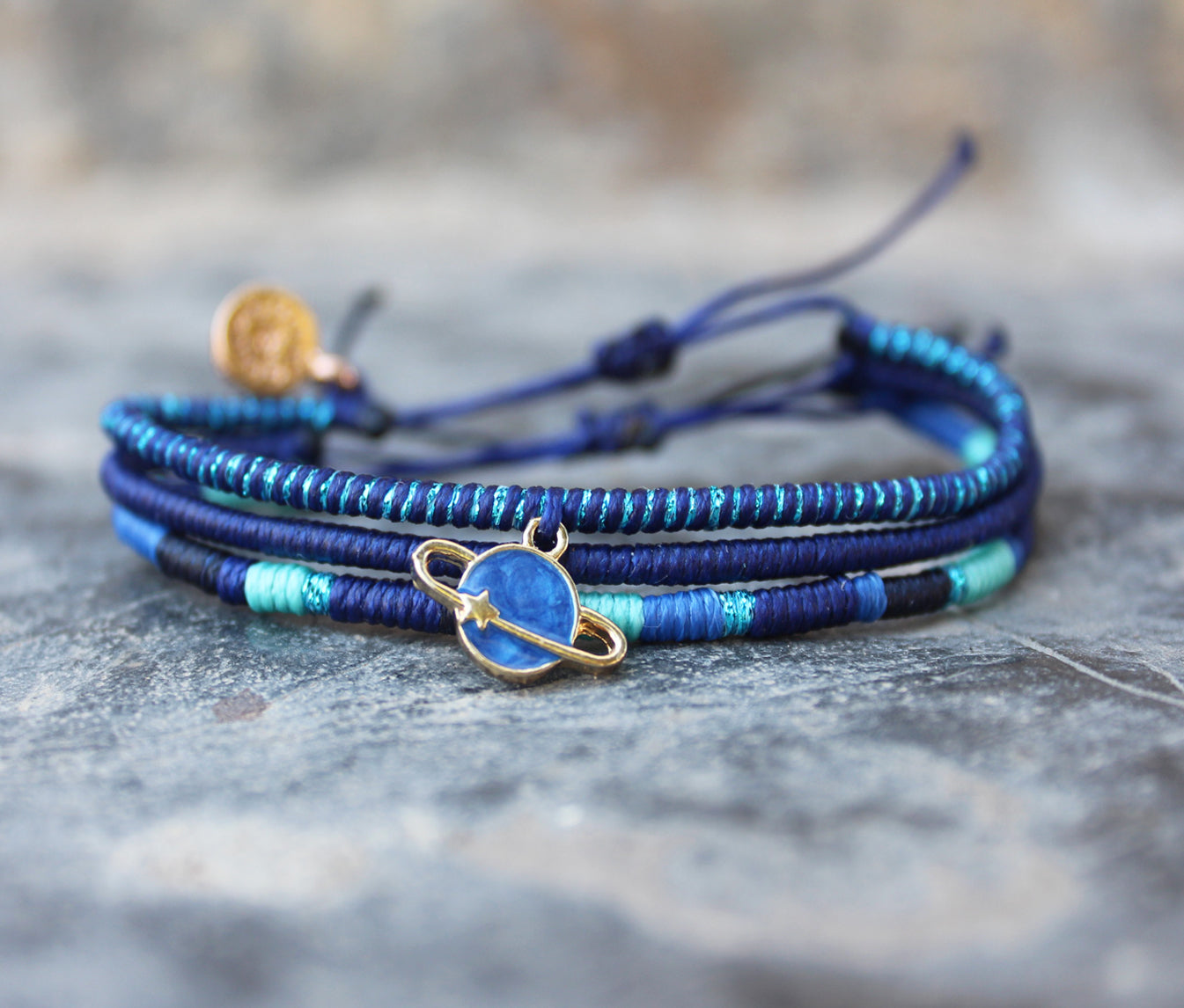 1 adet saks mavi ve parlak mavi renklerde gezegen bileklik